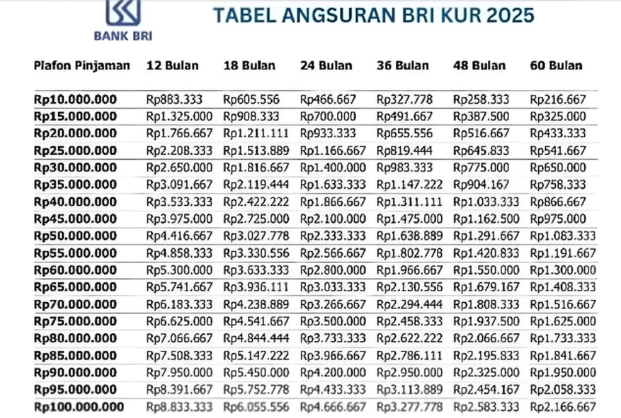 UPDATE Tabel Angsuran KUR BRI Desember 2025, Dilengkapi Persyaratan dan Cara Mengajukannya